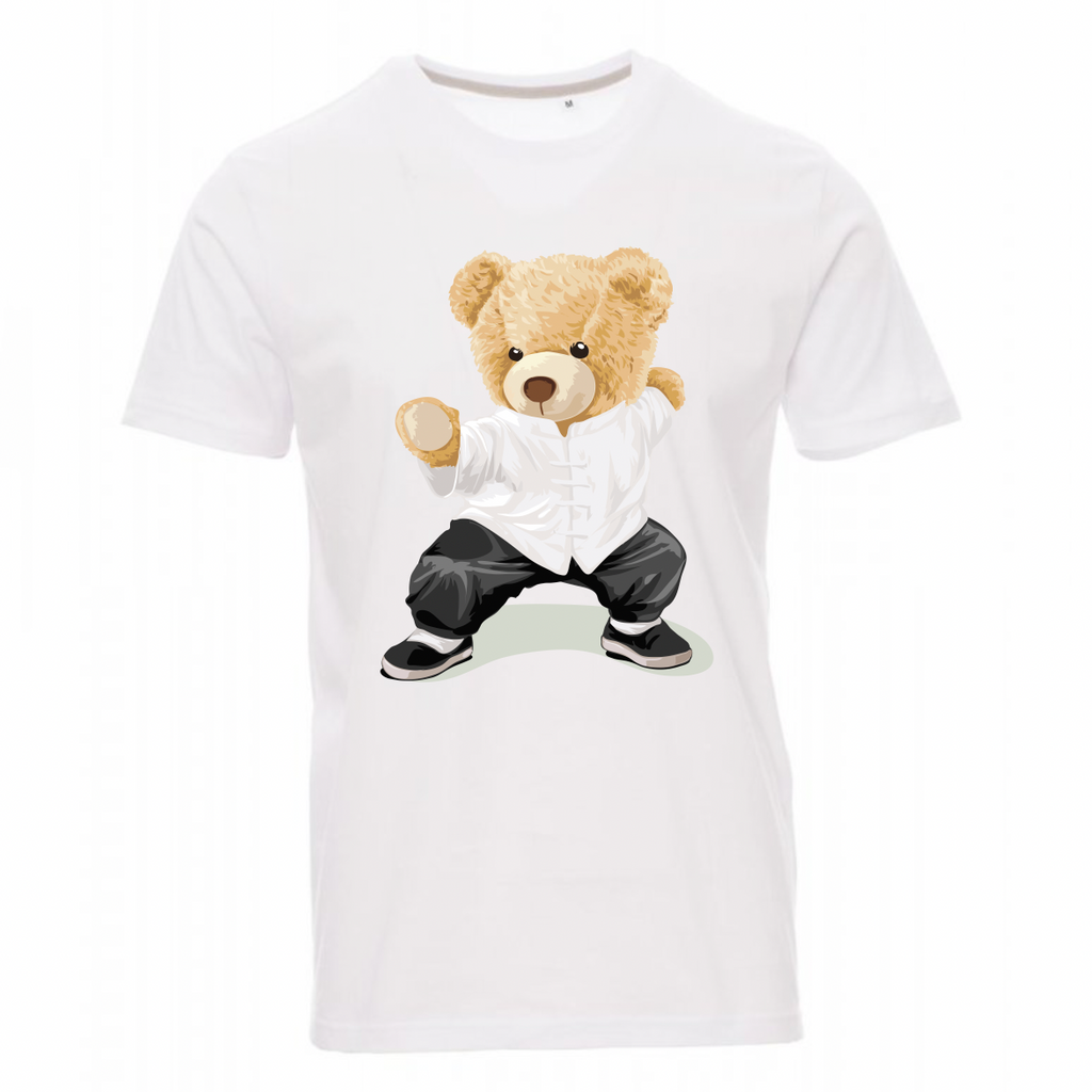 Maglietta 100% cotone 150gr/mq da uomo manica corta con girocollo leggermente ampio, colletto con bordino fine, maniche finite con fine risvolto a taglio vivo, cucita lateralmente.