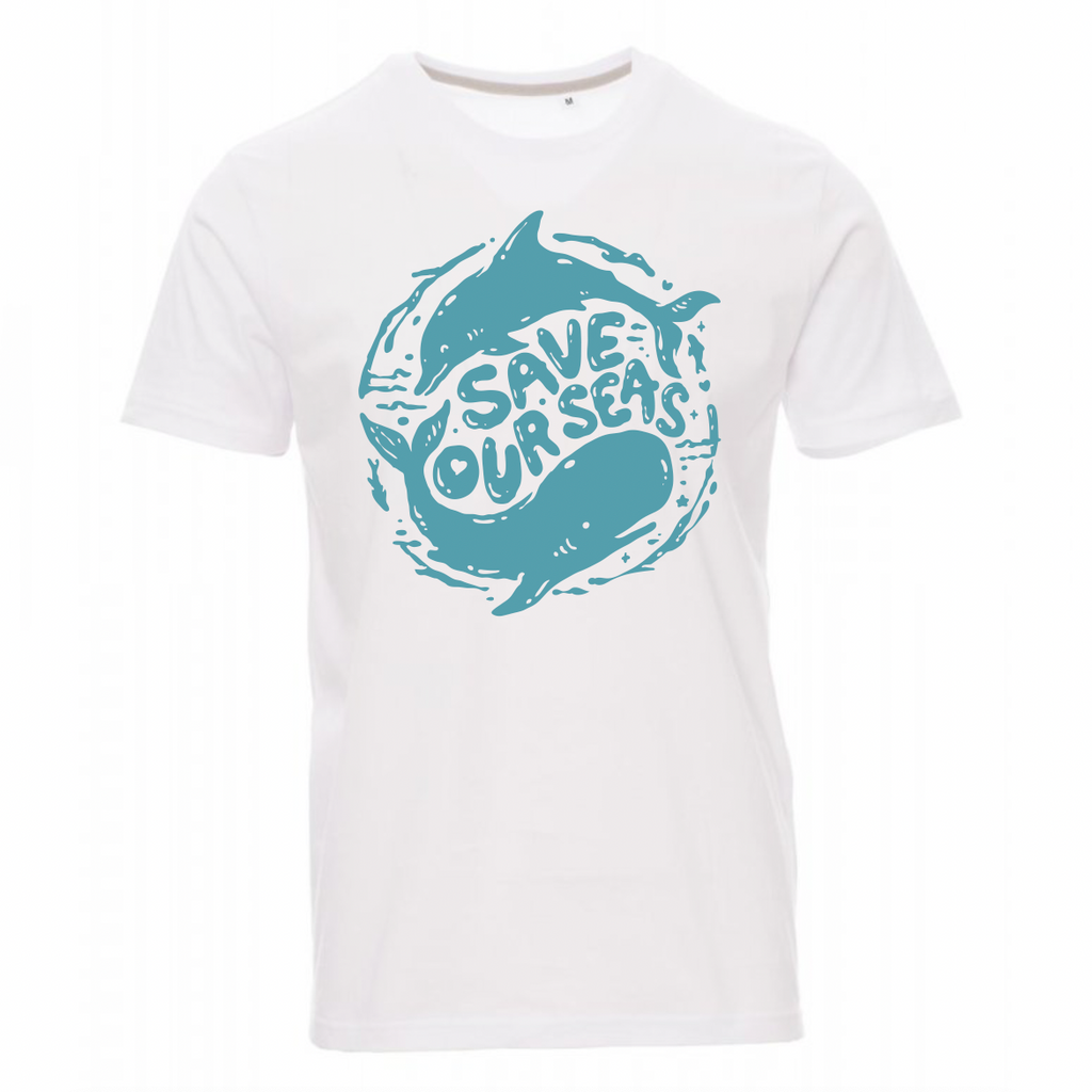 Maglietta 100% cotone 150gr/mq da uomo manica corta con girocollo leggermente ampio, colletto con bordino fine, maniche finite con fine risvolto a taglio vivo, cucita lateralmente.